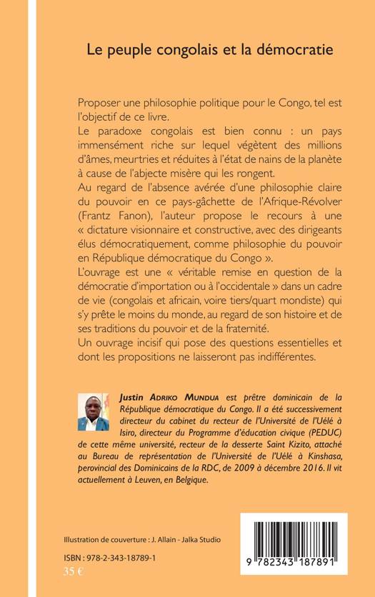 Ce livre a pour objectif de proposer une philosophie politique du Congo. Le paradoxe congolais est bien connu : un pays immensément riche dans lequel végètent des millions d'âmes meurtries. Cet ouvrage se veut donc une "véritable remise en question de la démocratie d'importation ou à l'occidentale" que certains tentent d'imposer.