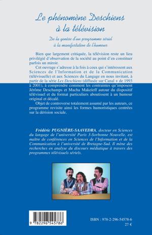 Cet ouvrage nous invite, à partir de la série Les Deschiens (diffusée sur Canal+ de 1993 à 2001), à comprendre comment les contraintes qu'imposent Jérôme Deschamps et Macha Makeïeff autour du dispositif télévisuel et du format particuliers aboutissent à un humour original et décalé. Objet de controverse, ce programme revisite les formes humoristiques centrées sur la dérision sociale.