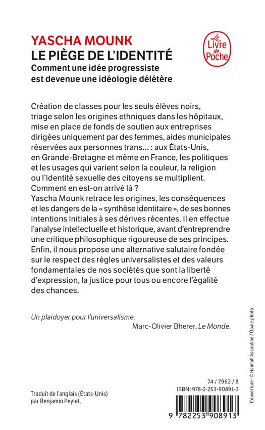 Yascha Mounk retrace les origines, les conséquences et les dangers de la « synthèse identitaire », de ses bonnes intentions initiales à ses dérives récentes. Il en effectue l’analyse intellectuelle et historique, avant d’entreprendre une critique philosophique rigoureuse de ses principes. Enfin, il nous propose une salutaire alternative fondée sur le respect des règles universalistes et des valeurs fondamentales de nos sociétés que sont la liberté d’expression, la justice pour tous ou encore l’égalité des chances.