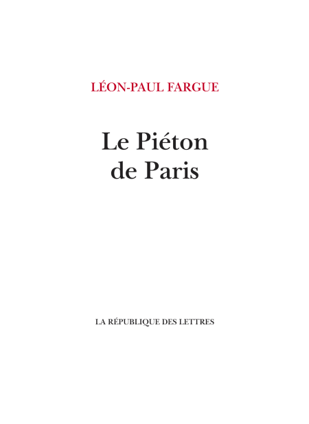 Noctambule invétéré et marcheur infatigable, Léon-Paul Fargue, sans doute le plus célèbre des "Piéton de Paris", ne cesse d'arpenter Paris au gré des amitiés et des cafés, flânant dans son arrondissement préféré, le Xe, entre la gare du Nord et le boulevard de la Chapelle, allant de la rive gauche à Montmartre et de Clichy à Vincennes, faisant l'aller-retour entre la librairie d'Adrienne Monnier, rue de l'Odéon, et la brasserie Lipp, boulevard Saint-Germain, dont les carreaux de céramique proviennent de la fabrique paternelle dont il est le patron. Compagnon d'écrivains et d'artistes comme, entre autres, Pierre Bonnard, Pablo Picasso, Claude Debussy, Erik Satie, Igor Stravinski, Diaghilev, Paul Claudel, Paul Valéry, André Gide, Valéry Larbaud, André Breton ou encore Louis Aragon, il occupe dans la société littéraire de la première moitié du XXe siècle une position exceptionnelle, et son oeuvre est une véritable mémoire de la littérature française. Mais son importance ne se limite pas aux seules qualités documentaires de ses amitiés et de ses déambulations parisiennes. Son admirable "Piéton de Paris" est avant tout l'occasion de découvrir un grand écrivain et un poète riche d'humanité, de profondeur et de résonances.
