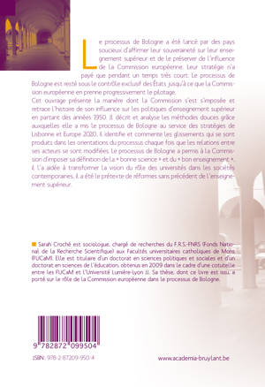 Cet ouvrage présente la manière dont la Commission européenne a pris le pilotage du processus de Bologne et retrace l'histoire de son influence sur les politiques d'enseignement supérieur en partant des années 1950. Il décrit et analyse les méthodes douces grâce auxquelles elle a mis le processus de Bologne au service des stratégies de Lisbonne et Europe 2020, il identifie et commente les glissements qui se sont produits dans les orientations du processus chaque fois que les relations entre ses acteurs se sont modifiées.