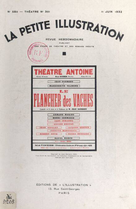 Comédie en trois actes et quatre tableaux créée au théâtre de Monte-Carlo, par les soins de M. René Blum, le 21 novembre 1931 et représentée pour la première fois à Paris, le 10 février 1932, au théâtre Antoine.
