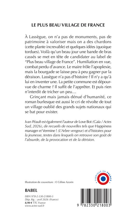 À Lassègue, on n'a pas de monuments, pas de patrimoine à valoriser mais on a des chardons (cette plante increvable) et quelques idées (quoique tordues). Voilà qu'un beau jour une bande de bras cassés se met en tête de candidater au label de "Plus beau village de France". Humiliation en vue, combat perdu d'avance. Le maire frôle l'apoplexie, mais la bourgade se laisse peu à peu gagner par la déraison. Lassègue n'a pas d'histoire ? Il n'y a qu'à lui en inventer une. La petite commune est dépourvue de charme ? Il suffit de l'apprêter. Et puis rien n'interdit de tricher un peu... Grinçant mais jamais dénué d'humanité, ce roman burlesque est aussi le cri de révolte de tout un village oublié des grands sujets nationaux qui se bat pour exister.