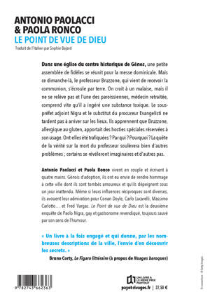 Un dimanche matin d'été, dans une église du centre historique de Gênes. Alors que les fidèles reçoivent la communion, le professeur Sergio Bruzzone tombe raide mort après avoir pris l'hostie. Tout indique qu'il a été empoisonné. La victime, pas vraiment regrettée, appartenait à un club de retraités, amis de longue date et passionnés de polars, qui tous peuvent l'avoir assassiné. Tout se complique lorsque les médias conservateurs assurent qu'on tente en réalité de viser les chrétiens. Le sous-préfet adjoint Paolo Nigra devra lutter contre les assauts d'une droite italienne hostile aux immigrés et aux homosexuels pour déjouer les pièges d'une énigme à la Agatha Christie en fouillant dans les secrets de retraités pas si tranquilles.
