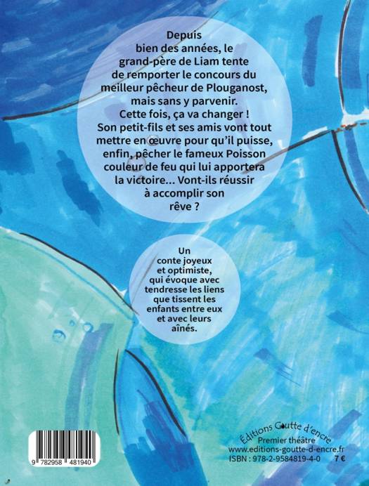Depuis bien des années, le grand-père de Liam tente de remporter le concours du meilleur pêcheur de Plouganost, mais sans y parvenir. Cette fois, ça va changer ! Son petit-fils et ses amis vont tout mettre en œuvre pour qu’il puisse, enfin, pêcher le fameux Poisson couleur de feu qui lui apportera la victoire... Vont-ils réussir à accomplir son rêve ?