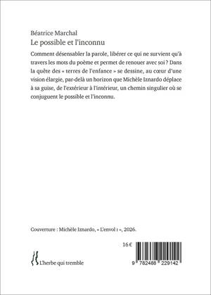 Comment désensabler la parole, libérer ce qui ne survient qu’à travers les mots du poème et permet de renouer avec soi ? Dans la quête des « terres de l’enfance » se dessine, au cœur d’une vision élargie, par-delà un horizon que Michèle Iznardo déplace à sa guise, de l’extérieur à l’intérieur, un chemin singulier où se conjuguent le possible et l’inconnu.