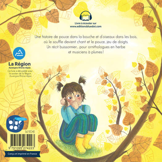 Une histoire de pouce dans la bouche et d'oiseaux dans les bois, où le souffle devient chant et le pouce, jeu de doigts. Un récit buissonnier...... pour ornithologues en herbe et musiciens à plumes!