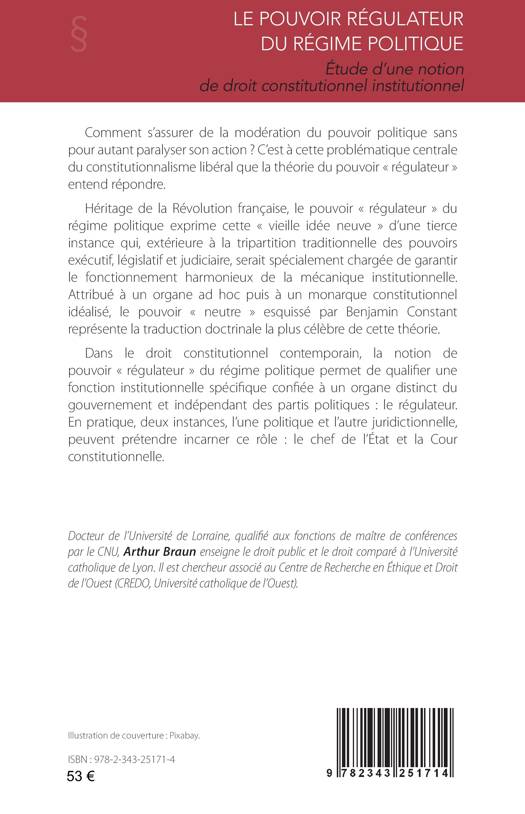 Comment s’assurer de la modération du pouvoir politique sans pour autant paralyser son action ? C’est à cette problématique centrale du constitutionnalisme libéral que la théorie du pouvoir « régulateur » entend répondre. Héritage de la Révolution française, le pouvoir « régulateur » du régime politique exprime cette « vieille idée neuve » d’une tierce instance qui, extérieure à la tripartition traditionnelle des pouvoirs exécutif, législatif et judiciaire, serait spécialement chargée de garantir le fonctionnement harmonieux de la mécanique institutionnelle. Attribué à un organe ad hoc puis à un monarque constitutionnel idéalisé, le pouvoir « neutre » esquissé par Benjamin Constant représente la traduction doctrinale la plus célèbre de cette théorie. Dans le droit constitutionnel contemporain, la notion de pouvoir « régulateur » du régime politique permet de qualifier une fonction institutionnelle spécifique confiée à un organe distinct du gouvernement et indépendant des partis politiques : le régulateur. En pratique, deux instances, l’une politique et l’autre juridictionnelle, peuvent prétendre incarner ce rôle : le chef de l’État et la Cour constitutionnelle.