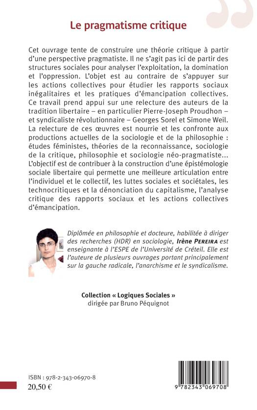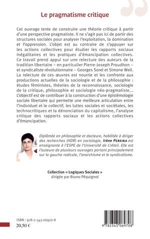 Cet ouvrage tente de construire une théorie critique à partir d'une perspective pragmatiste. Il ne s'agit pas ici de partir des structures sociales pour analyser l'exploitation, la domination et l'oppression. L'objet est au contraire de s'appuyer sur les actions collectives pour étudier les rapports sociaux inégalitaires et les pratiques d'émancipation collectives. Ce travail prend appui sur une relecture des auteurs de la tradition libertaire (Proudhon) et syndicaliste révolutionnaire (Georges Sorel, Simone Weil).