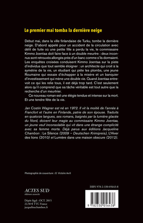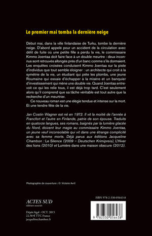 Accident, délit de fuite, double meurtre... Retour de l'inénarrable commissaire Kimmo Joentaa, lancé sur plusieurs fausses pistes à la fois qui pourraient n'en faire qu'une, une vraie. Entre élégie tendue sur la mort et tendre fête de la vie, Jan Costin Wagner mêle deuil et bonheur comme personne.