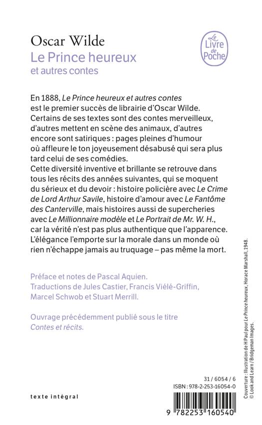 Ce volume comprend tous les contes et récits de Wilde : Le Prince heureux et autres contes, Une maison de grenades, Le Crime de Lord Arthur Savile et autres histoires, Le Portrait de Mr W. H.
