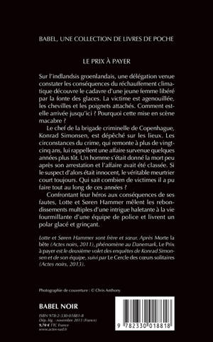 Sur l'inlandsis groenlandais, une délégation venue constater les conséquences du réchauffement climatique découvre le cadavre d'une jeune femme libéré par la fonte des glaces. La victime est agenouillée, les chevilles et les poignets attachés. Les circonstances du crime, qui remonte à plus de vingt ans, ressemblent étrangement à une affaire survenue quelques années plus tôt. Qui sait combien de victimes encore restent à découvrir...
