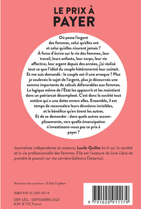 «Où passe l'argent des femmes, celui qu'elles ont et celui qu'elles n'auront jamais ? À force d'écrire sur la vie des femmes, leur travail, leurs enfants, leur corps, leur vie affective, leur argent depuis des années, j'ai réalisé tout ce que l'idéal du couple hétéronormé leur coûtait. Et me suis demandé : le couple est-il une arnaque ?».