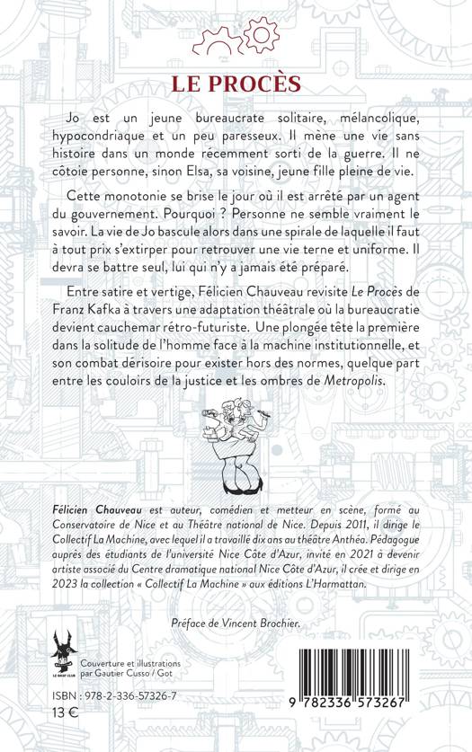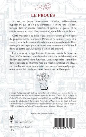 Jo est un jeune bureaucrate solitaire, mélancolique, hypocondriaque et un peu paresseux. Il mène une vie sans histoire dans un monde récemment sorti de la guerre. Il ne côtoie personne, sinon Elsa, sa voisine, jeune fille pleine de vie. Cette monotonie se brise le jour où il est arrêté par un agent du gouvernement. Pourquoi ? Personne ne semble vraiment le savoir. La vie de Jo bascule alors dans une spirale de laquelle il faut à tout prix s'extirper pour retrouver une vie terne et uniforme. Il devra se battre seul, lui qui n'y a jamais été préparé. Entre satire et vertige, Félicien Chauveau revisite Le Procès de Franz Kafka à travers une adaptation théâtrale où la bureaucratie devient cauchemar rétro-futuriste. Une plongée tête la première dans la solitude de l'homme face à la machine institutionnelle, et son combat dérisoire pour exister hors des normes, quelque part entre les couloirs de la justice et les ombres de Metropolis.