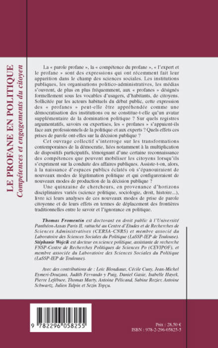 Cet ouvrage collectif s'interroge sur les transformations contemporaines de la démocratie, liées notamment à la multiplication de dispositifs participatifs, témoignant d'une certaine reconnaissance des compétences que peuvent mobiliser les citoyens lorsqu'ils s'expriment sur la conduite des affaires publiques. Une quinzaine de chercheurs analysent ces nouveaux modes de prise de parole citoyenne et leurs effets.