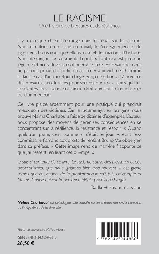 Il y a quelque chose d’étrange dans le débat sur le racisme. Nous discutons du marché du travail, de l’enseignement et du logement. Nous nous querellons au sujet des manuels d’histoire. Nous dénonçons le racisme de la police.Tout cela est plus que légitime et nous devons continuer à le faire. En revanche, nous ne parlons jamais du soutien à accorder aux victimes. Ce livre plaide pour une pratique qui prendrait mieux soin des victimes.Car le racisme agit sur les gens, nous prouve Naima Charkaoui à l’aide de dizaines d’exemples. L’auteur nous propose des moyens de gérer ses conséquences en se concentrant sur la résilience, la résistance et l’espoir.