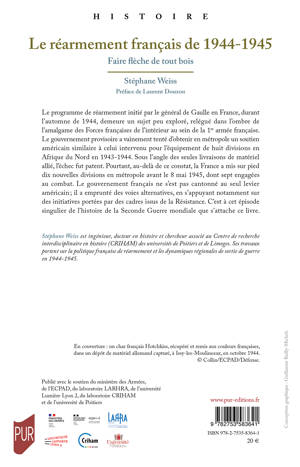 Le programme de réarmement initié par le général de Gaulle en France, durant l'automne de 1944, demeure un sujet peu exploré, relégué dans l'ombre de l'amalgame des Forces françaises de l'intérieur au sein de la 1re armée française. Le gouvernement provisoire a vainement tenté d'obtenir en métropole un soutien américain similaire à celui intervenu pour l'équipement de huit divisions en Afrique du Nord en 1943-1944. Sous l'angle des seules livraisons de matériel allié, l'échec fut patent. Pourtant, au-delà de ce constat, la France a mis sur pied dix nouvelles divisions en métropole avant le 8 mai 1945, dont sept engagées au combat. Le gouvernement français ne s'est pas cantonné au seul levier américainu2009; il a emprunté des voies alternatives, en s'appuyant notamment sur des initiatives portées par des cadres issus de la Résistance. C'est à cet épisode singulier de l'histoire de la Seconde Guerre mondiale que s'attache ce livre.