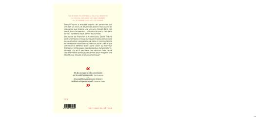 Mais il serait simple de refuser une telle contrainte si le travail ne jouait pas aussi le rôle d’une forteresse pour ceux qui s’y plient, protection autoproclamée contre le chômage et son stigmate, promettant inclusion sociale et bonne santé. David Frayne a enquêté auprès de personnes qui ont renoncé à chercher du travail : quel a été le moment de bascule, comment vivre en étant considéré comme incomplet ou inutile, quelles nouvelles perspectives s’ouvrent ? Il s’interroge : ces parcours ne contiennent-ils pas le ferment d’une alternative politique, donnant des armes pour imaginer une forme plus robuste et plus authentique de liberté ?