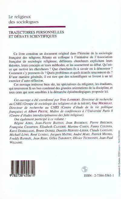Ce livre constitue un document original dans l'histoire de la sociologie française des religions. Différents chercheurs explicitent leurs théories, leur concepts et leurs méthodes, et les soumettent au débat. Qu'est-ce qui motive les chercheurs ? Que cherchent-ils à savoir et à démontrer ? Comment s'y prennent-ils ? Quels problèmes et quels écueils rencontrent-ils ?