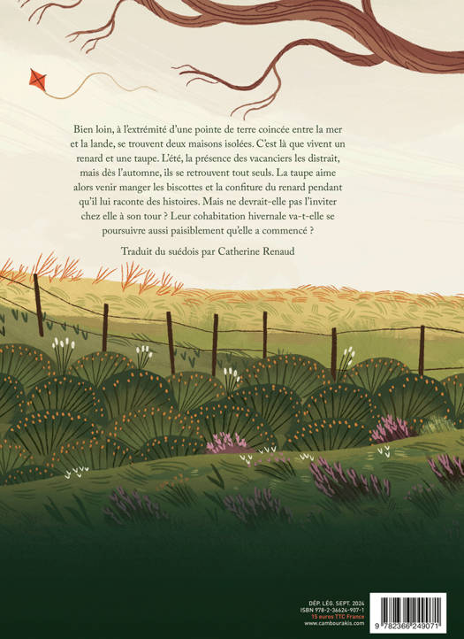 Bien loin, à l'extrémité d'une pointe de terre coincée entre la mer et la lande, se trouvent deux maisons isolées. C'est là que vivent un renard et une taupe. L'été, la présence des vacanciers les distrait, mais dès l'automne, ils se retrouvent tout seuls. La taupe aime alors venir manger les biscottes et la confiture du renard pendant qu'il lui raconte des histoires. Mais ne devrait-elle pas l'inviter chez elle à son tour ? Leur cohabitation hivernale va-t-elle se poursuivre aussi paisiblement qu'elle a commencé ?