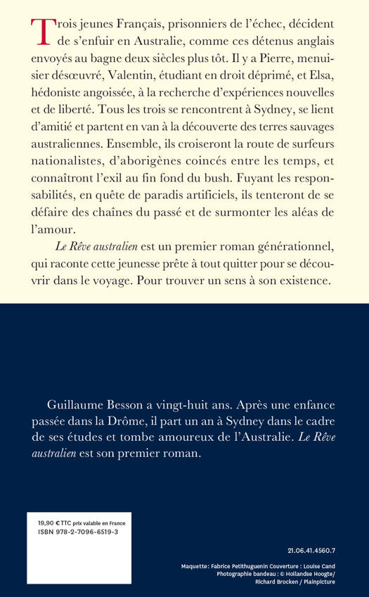 Le Rêve australien est un premier roman générationnel, qui raconte cette jeunesse prête à tout quitter pour se découvrir dans le voyage. Pour trouver un sens à son existence.