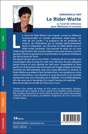 Le Tarot de Rider-Waite s’est imposé comme la référence incontournable du monde ésotérique anglo-saxon. Les clefs de son succès ? La puissance de ses symboles et, surtout, ses illustrations qui le rendent particulièrement facile à interpréter. Pas besoin de don pour vous initier : l’auteure de cet ouvrage vous accompagne dans la prise en main d’un des jeux les plus puissants jamais conçus et vous dévoile les clés pour comprendre les 78 cartes et les « faire parler » grâce à des techniques de tirages simples et précises. Que vous soyez débutant ou avancé, le Rider-Waite vous aidera à faire les bons choix, vous guidera sur votre chemin d’évolution, vous donnera le coup de pouce ou la nouvelle perspective que vous attendiez pour dépasser vos problématiques, afin de vous ouvrir les portes d’un avenir heureux et maîtrisé. Bienvenue dans le monde du Tarot pour tous !