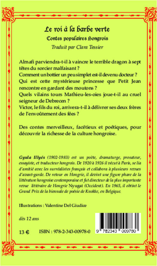 Almafi parviendra-t-il à vaincre le terrible dragon à sept têtes du sorcier malfaisant ? Comment un bottier un peu simplet est-il devenu docteur ? Qui est cette mystérieuse princesse que Petit Jean rencontre en gardant des moutons ? Quels vilains tours Mathieu-les-oies joue-t-il au cruel seigneur de Debrecen ? Victor, le fils du roi, arrivera-t-il à délivrer ses deux frères de l’envoûtement des fées ? Des contes merveilleux, facétieux et poétiques, pour découvrir la richesse de la culture hongroise.