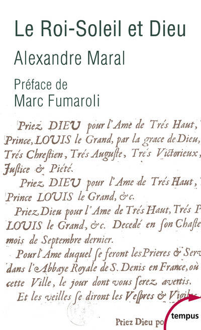 Louis XIV se prenait-il pour Dieu ? Ses sujets ont pu le croire, tant il incarnait la majesté divine dont, ayant reçu les saintes huiles du sacre, il exprimait sur terre la volonté. Aussi s'impliqua-t-il dans la vie religieuse du royaume, et même de l'Europe, comme aucun de ses prédécesseurs, de la défense du gallicanisme à la révocation de l'édit de Nantes en passant par la persécution de Port-Royal, sans compter l'attention portée à la liturgie et à la musique sacrée. En même temps, après avoir beaucoup sacrifié aux plaisirs du siècle, il se reconnaissait humble pécheur et fit une mort exemplaire. Les pieds sur terre, la tête dans le ciel, ainsi se découvre la double identité du Roi-Soleil.