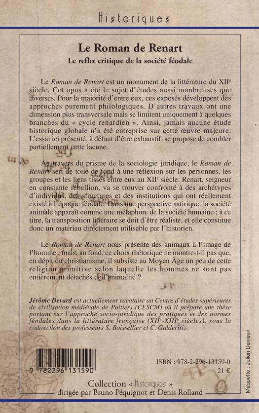 Le roman de Renart est un monument de la littérature du XIIe siècle. Au travers du prisme de la sociologie juridique, cet ouvrage sert de toile de fond à une réflexion sur les personnes, les groupes et les liens tissés entre eux au XIIe siècle. Le roman de Renart présente des animaux à l'image de l'homme ; mais, au fond, ce choix rhétorique ne montre-t-il pas qu'en dépit du christianisme, il subsiste au Moyen Age un peu de cette religion primitive selon laquelle les hommes ne sont pas entièrement détachés de l'animalité ?