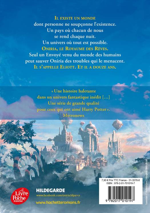 Eliott, 12 ans, est un garçon en apparence comme tous les autres. Jusqu’au jour où il découvre un sablier magique qui lui permet de voyager dans un monde aussi merveilleux que dangereux : Oniria, le monde des rêves. Un monde où prennent vie les milliards de personnages, d’univers, et toutes les choses les plus folles et les plus effrayantes rêvées chaque nuit par les êtres humains. Collégien ordinaire le jour, Eliott devient la nuit, parmi les rêves et les cauchemars qui peuplent Oniria, un puissant Créateur, qui peut faire apparaître tout ce qu’il souhaite par le simple et immense pouvoir de son imagination. En explorant Oniria pour sauver son père, plongé depuis plusieurs mois dans un mystérieux sommeil, Eliott est finalement confronté à son extraordinaire destin. Car Eliott est l’ « Envoyé » : il doit sauver le Royaume des rêves, menacé par la sanglante révolution des cauchemars. Pour en savoir plus sur la série ONIRIA et poser vos questions en direct à l'auteur, rendez-vous sur : https://www.facebook.com/oniria.bfparry