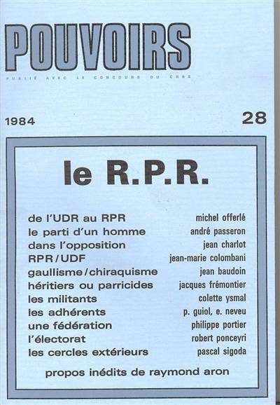 Qui sont-ils ? Les adhérents du RPR sont-ils à l’image de la France ? Les membres des fédérations sont-ils à l’image de l’entreprise privée ? Les électeurs sont-ils indifférenciés dans l’opposition ? Quels clubs de pensée, quels groupes d’intérêts gravitent autour du RPR ? Quelles sont ses ramifications internationales ?