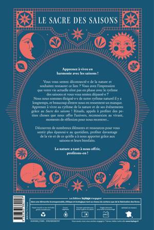 Vous vous sentez déconnecté·e de la nature et souhaitez restaurer ce lien ? Vous avez l’impression que votre vie actuelle n’est pas en phase avec le rythme des saisons et vous vous sentez dépassé·e ? Nous nous sommes éloigné·e·s de notre rythme naturel il y a longtemps, et beaucoup d’entre nous en ressentent un manque. Apprenez à vivre au rythme de la nature et de ses événements grâce au Sacre des saisons ! Rituels, appels à profiter des petites choses que nous offre l’univers, reconnexion au vivant, moments de réflexion pour nous recentrer… Découvrez de nombreux éléments et ressources pour vous sentir plus épanoui·e au quotidien, profiter davantage de la vie et de ce qu’elle a à nous apporter grâce aux saisons et leurs bienfaits. La nature a tant à nous offrir, profitons-en !