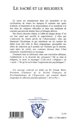Le sacré est omniprésent dans les mentalités et les civilisations de toutes les époques. Il exprime une quête d'absolu, d'irrationnel et de transcendance et se manifeste à la fois dans les religions officielles et dans une multitude de courants qui peuvent donner lieu à d'étranges dérives. Des forces obscures rôdent, à l'affût de chaque destin. C'est sur leur autel que sacrifie le superstitieux ; à elles que s'adressent les rituels privés de l'obsessionnel ; elles qui tétanisent l'hystérique et qui entraînent sur les sentiers du délire. Leur fait écho le Dieu énigmatique, perceptible aux effets de séduction qu'il produit sur l'homme qui le cherche, sujet épris de vérité, aux contours dissous dans l'élan amoureux, transférentiel ou mystique. Comment faire la différence entre une conviction délirante, l'authenticité et la diversité des croyances ? Où se situe le religieux, le sacré, le mystique ? L'art est-il « religieux » ou «sacré» ? Et qu'en est-il dans l'expression des psychotiques?