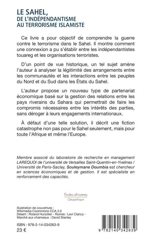Ce livre a pour objectif de comprendre la guerre contre le terrorisme dans le Sahel. Il montre comment une connexion a pu s'établir entre les indépendantistes touareg et les organisations terroristes. D'un point de vue historique, un tel sujet amène l'auteur à analyser la légitimité des arrangements entre les communautés et les interactions entre les peuples du Nord et du Sud dans les États du Sahel. L'auteur propose un nouveau type de partenariat économique basé sur la gestion des relations entre les pays riverains du Sahara qui permettrait de faire les compromis nécessaires entre les intérêts des parties, sans déroger à leurs engagements internationaux. À défaut d''une telle solution, il décrit une fiction catastrophe non pas pour le Sahel seulement, mais pour toute l'Afrique et même l'Europe.