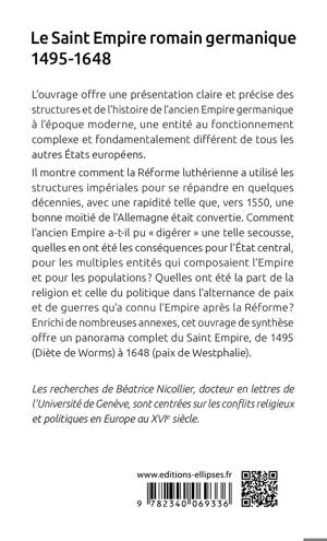 Enrichi d’annexes consacrées aux territoires internes et à leur évolution pendant la période considérée ainsi que de nombreuses cartes, cet ouvrage de synthèse fondé sur l’exploitation des recherches les plus récentes offre un panorama complet du Saint Empire, de 1495 (Diète de Worms) à 1648 (paix de Westphalie).