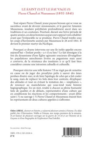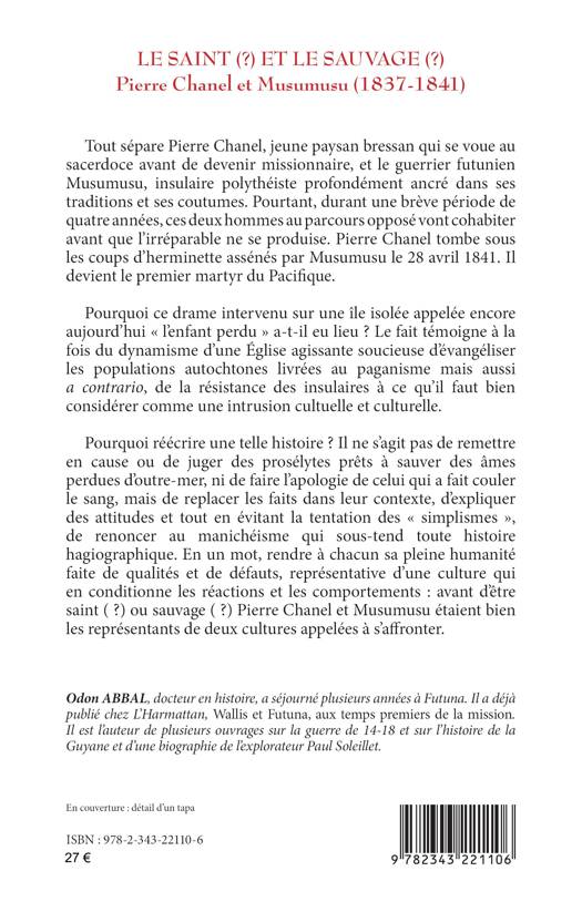 Tout sépare Pierre Chanel, missionnaire bressan, et le guerrier futunien Musumusu, insulaire polythéiste. Pourtant, durant quatre brèves années, ces deux hommes vont cohabiter avant que l’irréparable ne se produise. Pierre Chanel tombe sous les coups de Musumusu le 28 avril 1841. Il devient le premier martyr du Pacifique. Pourquoi ce drame a-t-il eu lieu ? Le fait témoigne à la fois du dynamisme d’une Église agissante soucieuse d’évangéliser les autochtones païens mais aussi a contrario, de la résistance des insulaires à une intrusion cultuelle et culturelle. Pourquoi réécrire une telle histoire ? Il ne s’agit pas de remettre en cause ou de juger des prosélytes, ni de faire l’apologie de la violence, mais d’expliquer des attitudes et tout en évitant le manichéisme. En un mot, rendre à chacun sa pleine humanité faite de qualités et de défauts, représentative d’une culture : avant d’être saint ( ?) ou sauvage ( ?) Chanel et Musumusu étaient bien les représentants de deux cultures appelées à s’affronter.