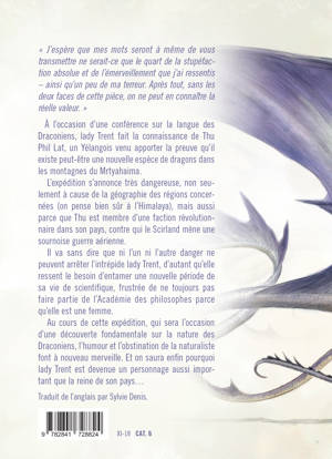 Au cours de cette expédition, qui sera l'occasion d'une découverte fondamentale sur la nature des Draconiens, l'humour et l'obstination de la naturaliste font à nouveau merveille. Et on saura enfin pourquoi Iady Trent est devenue un personnage aussi important que la reine de son pays...