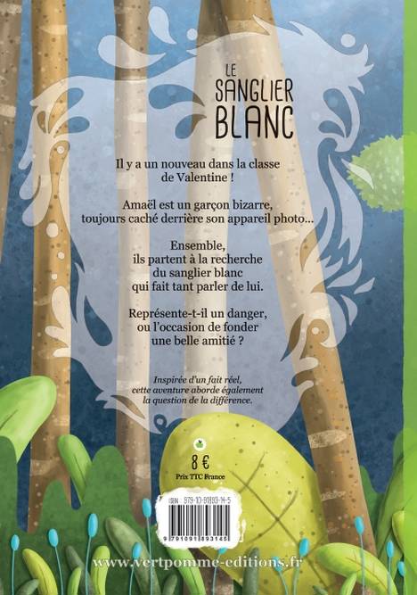 Il y a un nouveau dans la classe de Valentine ! Amaël est un garçon bizarre, toujours caché derrière son appareil photo... Ensemble, ils partent à la recherche du sanglier blanc qui fait tant parler de lui. Représente-t-il un danger ou l'occasion de fonder une belle amitié ? Inspirée d'un fait réel, cette aventure aborde également la question de la différence.