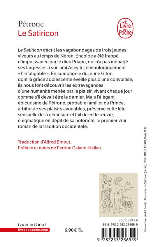 Le Satiricon, on le sait, décrit les vagabondages de trois jeunes viveurs au temps de Néron. Encolpe a été frappé d'impuissance par le dieu Priape qui n'a pas ménagé ses largesses à son ami Ascylte, étymologiquement "l'Infatigable". En compagnie du jeune Giton dont la grâce adolescente éveille plus de convoitise, ils nous font découvrir les extravagances d'une humanité menée par le plaisir, vivant chaque jour comme s'il devait être le dernier. Mais l'élégant épicurisme de Pétrone, probable familier du Prince, arbitre de ses plaisirs avouables, préserve cette fête sensuelle de la démesure et fait de cette oeuvre énigmatique en dépit de sa notoriété le premier vrai roman de la tradition occidentale.