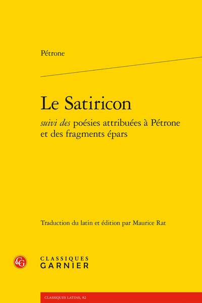 Cet emblème du roman latin nous est parvenu de façon lacunaire. Mais les passages qui ont été transmis suffisent à saisir l'importance et la force littéraires de ce texte où tout se mêle, genres, registres, corps et classes sociales. Epopée grotesque de héros de pacotille, le texte narre les aventures de trois pauvres hères, Encolpe, Ascylte et Giton, des bas-fonds sordides de la société impériale aux fastes écoeurants du richissime Trimalcion. Au-delà du réalisme et d'une réflexion profonde sur les apparences, il y a chez Pétrone un talent de la composition. Dans ce tourbillon de scènes, de descriptions et de récits, la nonchalance et la bigarrure deviennent les marques de l'élégance et la naïveté le prétexte à l'ironie la plus acerbe.