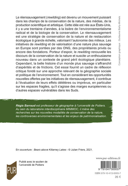 Le réensauvagement (rewilding) est devenu un mouvement puissant dans les champs de la conservation de la nature, des médias, de la production scientifique et artistique. Cette idée est née aux États-Unis, il y a une trentaine d’années, à la lisière de l’environnementalisme radical et de la biologie de la conservation. Le réensauvagement est une stratégie de conservation de la nature et de restauration écologique à grande échelle, valorisant l’autonomie des milieux. Les initiatives de rewilding et de valorisation d’une nature plus sauvage en Europe sont portées par des ONG, des propriétaires privés ou encore des fondations. Porteur d’espoir, le rewilding renouvelle les discours de la conservation de la nature et suscite un enthousiasme nouveau dans un contexte de grand péril écologique planétaire. Cependant, la belle histoire d’un monde plus sauvage s’affranchit d’aspérités et de frictions. Cet essai fournit un cadre de réflexion critique fondé sur une approche relevant de la géographie sociale et politique de l’environnement. Tout en considérant les opportunités nouvelles offertes par les initiatives de réensauvagement, il contribue à l’évaluation de leurs effets délétères ou imprévus, en particulier sur les espaces fragiles, qu’il s’agisse des marges européennes ou d’autres espaces vulnérables dans les Suds.