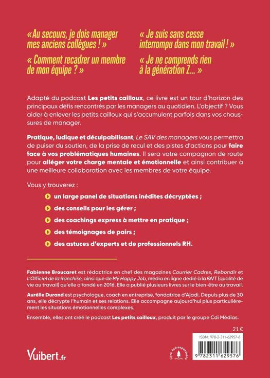 Pratique, ludique et déculpabilisant, Le SAV des managers vous permettra de puiser du soutien, de la prise de recul et des pistes d’actions pour faire face à vos problématiques humaines. Il sera votre compagnon de route pour alléger votre charge mentale et émotionnelle et ainsi contribuer à une meilleure collaboration avec les membres de votre équipe.