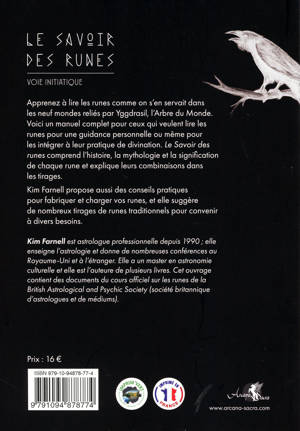 Apprenez à lire les runes comme on s'en servait dans les neuf mondes reliés par Yggdrasil, l'Arbre des Mondes. Voici un manuel complet pour ceux qui veulent lire les runes pour une guidance personnelle, ou même pour les intégrer à leur pratique professionnelle de divination. Les Runes pour débutants comprend les documents du cours officiel sur les runes de la British Astrological and Psychic Society (société britannique d'astrologues et de médiums). Il couvre l'histoire, la mythologie,et la signification de chaque rune et explique leurs combinaisons dans les tirages. Kim Farnell propose aussi des conseils pratiques pour fabriquer et charger vos runes, et elle suggère de nombreux tirages de runes traditionnels pour convenir à divers besoins. Kim Farnell est astrologue professionnelle depuis 1990 ; elle enseigne l'astrologie et donne de nombreuses conférences au Royaume-Uni et à l'étranger. Elle a un Master en astronomie culturelle, et elle est l'auteure de plusieurs livres.