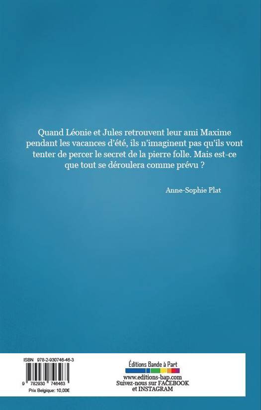 Quand Léonie et Jules retrouvent leur ami Maxime pendant les vacances d’été, ils n’imaginent pas qu’ils vont tenter de percer le secret de la pierre folle. Mais est-ce que tout se déroulera comme prévu ?