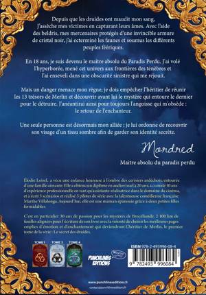 « Depuis que les druides ont maudit mon sang, j’assèche mes victimes en capturant leur âme. Avec l’aide des Beldris, mes mercenaires protégés d’une invincible armure de cristal noir, j’ai exterminé les faunes et soumis les différents peuples féériques. En 18 ans, je suis devenu le maître absolu du Paradis Perdu. J’ai volé l’hyperborée, mené cet univers aux frontières des ténèbres et l’ai enseveli dans une obscurité sinistre qui me réjouit. Mais un danger menace mon règne : Kenric a ouvert la porte de mon royaume, et je dois l’empêcher de réunir les 13 trésors de Merlin et découvrir avant lui le mystère qui entoure le dernier pour le détruire. J’anéantirai ainsi pour toujours l’angoisse qui m’obsède : le retour de l’enchanteur. Une seule personne est désormais mon alliée ; je lui ordonne de recouvrir son visage d’un tissu sombre afin de garder son identité secrète. » Mordred - Maître absolu du Paradis Perdu
