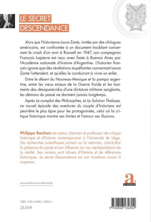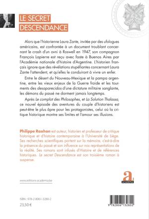 Alors que l’historienne Laura Zante, invitée par des ufologues américains, est confrontée à un document troublant concernant le crash d’un ovni à Roswell en 1947, son compagnon François Lapierre est reçu avec faste à Buenos Aires par l’Académie nationale d’histoire d’Argentine. L’historien français ignore que des révélations stupéfiantes concernant Laura Zante l’attendent, et qu’elles le conduiront à vivre un enfer.