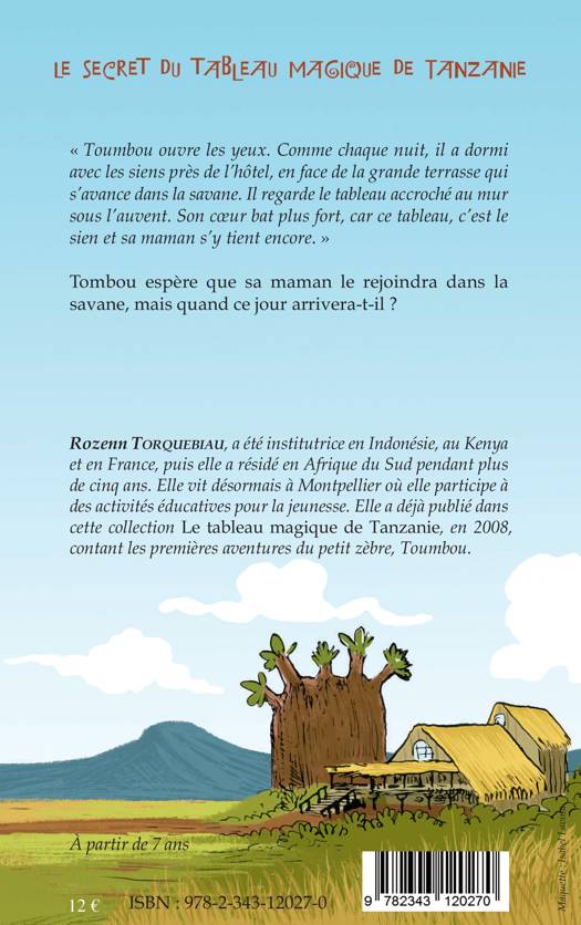 Toumbou, un petit zèbre peint dans un tableau, s'est échappé dans la savane. Il est sorti du cadre tingatinga, peinture africaine aux couleurs vives et brillantes, dans lequel il était peint en compagnie de Mina, sa maman. Trop excité par la vie dans la savane avec les autres zèbres, il n'a pas pu résister. Il a quitté sa maman le coeur gros, mais certain qu'elle viendrait le rejoindre. Chaque jour, il l'attend, mais un lien magique puissant retient Mina dans le tableau. La maman zèbre et son petit vont-ils réussir à se retrouver ?