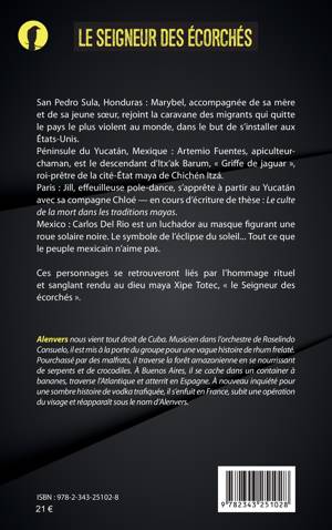San Pedro Sula, Honduras : Marybel, accompagnée de sa mère et de sa jeune soeur, rejoint la caravane des migrants qui quitte le pays le plus violent au monde, dans le but de s’installer aux États-Unis. Péninsule du Yucatán, Mexique : Artemio Fuentes est apiculteur-chaman. Paris : Jill, effeuilleuse pole-dance, s’apprête à partir au Yucatán avec sa compagne Chloé. Mexico : Carlos Del Rio est un luchador au masque figurant une roue solaire noire. Tout ce que le peuple mexicain n’aime pas. Ces personnages se retrouveront liés par l’hommage rituel et sanglant rendu au dieu maya Xipe Totec, « le Seigneur des écorchés ».