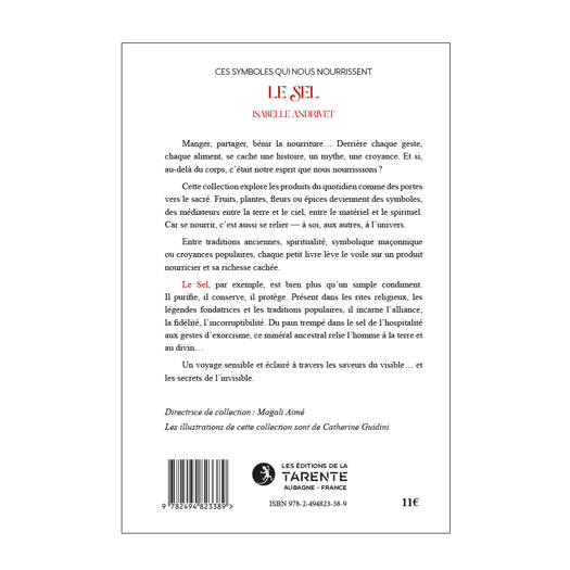 Manger, partager, bénir la nourriture… Derrière chaque geste, chaque aliment, se cache une histoire, un mythe, une croyance. Et si, au-delà du corps, c’était notre esprit que nous nourrissions ? Cette collection explore les produits du quotidien comme des portes vers le sacré. Fruits, plantes, fleurs ou épices deviennent des symboles, des médiateurs entre la terre et le ciel, entre le matériel et le spirituel. Car se nourrir, c’est aussi se relier — à soi, aux autres, à l’univers. Entre traditions anciennes, spiritualité, symbolique maçonnique ou croyances populaires, chaque petit livre lève le voile sur un produit nourricier et sa richesse cachée. Le Sel, par exemple, est bien plus qu’un simple condiment. Il purifie, il conserve, il protège. Présent dans les rites religieux, les légendes fondatrices et les traditions populaires, il incarne l’alliance, la fidélité, l’incorruptibilité. Du pain trempé dans le sel de l’hospitalité aux gestes d’exorcisme, ce minéral ancestral relie l’homme à la terre et au divin… Un voyage sensible et éclairé à travers les saveurs du visible… et les secrets de l’invisible.