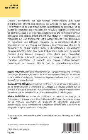 Depuis l'avènement des technologues informatiques, des outils d'exploration offrent aux sciences du langage et aux sciences de l'information et de la communication la possibilité de constituer et de traiter des données qui engagent un nouveau rapport à l'empirique et donnent accès à de nouveaux observables. Cet ouvrage propose une réflexion conjointe de la sémiotique et de la linguistique sur les corpus numériques contemporains afin de se demander si, et par quel(s) mode(s) d'exploitation, les données peuvent objectivement faire sens.